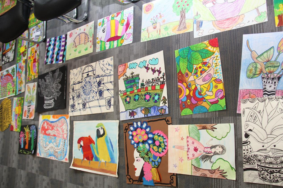 評審當日,所有參賽畫作鋪滿了整個評審廳,連挪腳走路都很困難,五顏六色的繪畫作品也讓整個評審廳充滿了生機,孩子們獨特的創意和不凡的繪畫功力也使得評委老師贊不絕口。