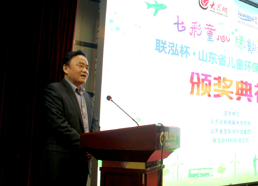 山東省新聞美術家協會副主席尹秀波致辭,并對本次大賽進行專業總結:“在整個評審過程中,我深感孩子們的想象力無比豐富,在作品表現方面也敢于運用色彩,大多數作品都能緊扣“環保”這一主題,通過警示、畫面對比等方式展現了保護環境的重要性,在防治大氣污染、污水處理等方面的作品很好地展示了孩子們的想象力。本次大賽在培養孩子們的環保意識方面起到了很好的啟蒙作用,讓孩子們在完成創作的過程中進一步認識到保護環境的重要性,保護環境人人有責。希望獲獎的小朋友們能夠以這次比賽作為新的起點,在作品創作方面向著更高的目標邁進,在環保意識培養方面能有很大的提升!”