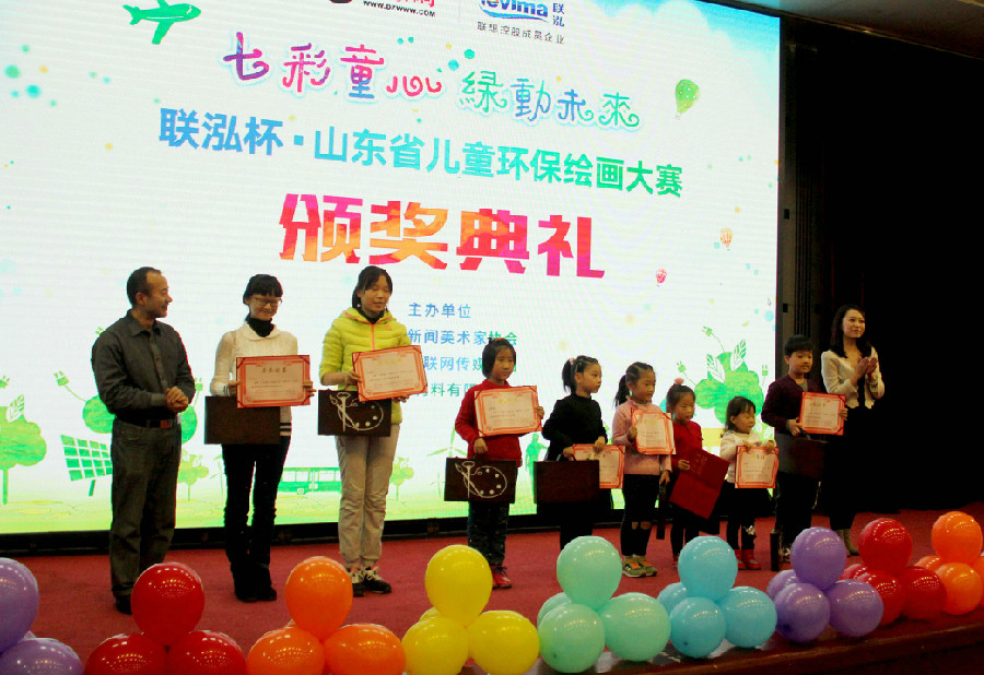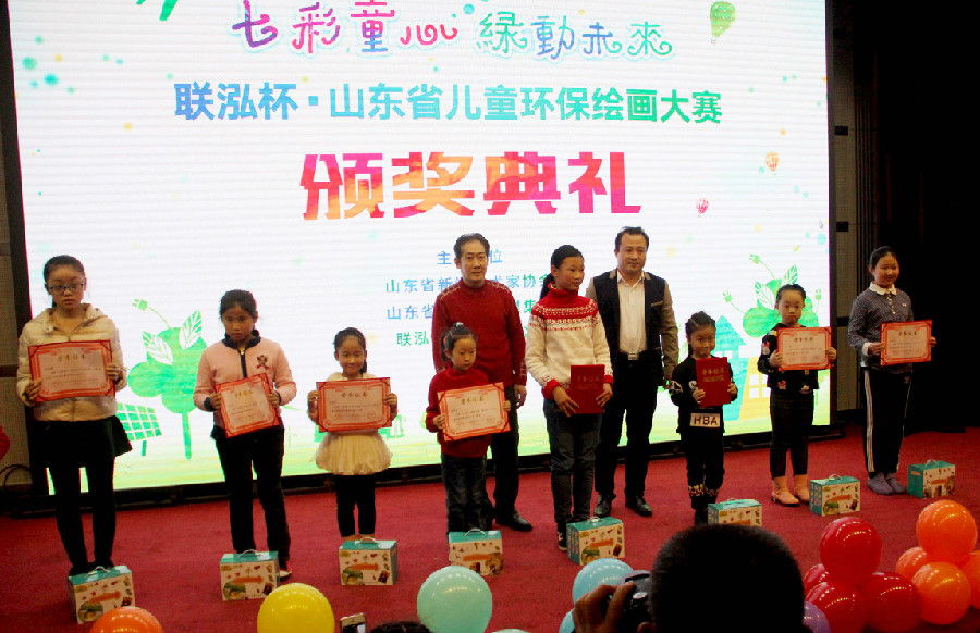 12月3日, “七彩童心 綠動未來”聯泓杯山東省兒童環保繪畫大賽在濟南舉辦了隆重的頒獎典禮,44位小畫家在鮮花、掌聲和美食中度過了一個愉快而有意義的下午。