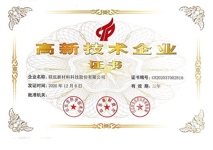近日,聯泓新材料科技股份有限公司收到山東省科學技術廳、山東省財政廳、國家稅務總局山東省稅務局聯合頒發的《高新技術企業證書》。此次高新技術企業認定是在公司原《高新技術企業證書》有效期滿后進行的再次認定。根據國家高新技術企業相關稅收優惠政策規定,2020-2022年期間,公司可以繼續按15%的優惠稅率繳納企業所得稅。