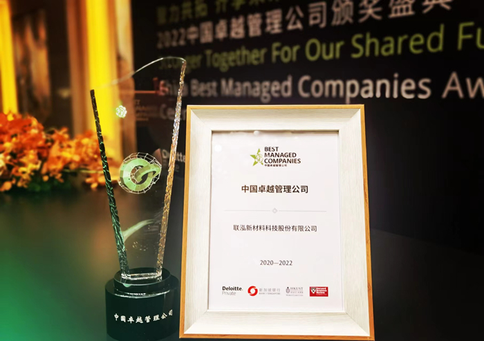 8月12日,主題為“聚力共拓,齊享未來”的2022中國卓越管理公司(Best Managed Companies, 簡稱“BMC”)頒獎盛典在京舉行。聯泓新材料科技股份有限公司(簡稱“聯泓新材料”)連續兩年獲得“中國卓越管理公司”殊榮。聯泓新材料高級副總裁兼CFO、董秘蔡文權出席頒獎盛典。
