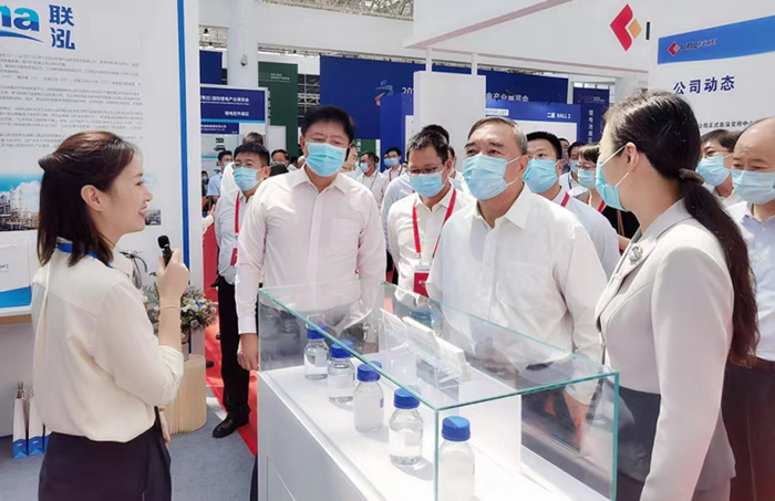 開幕式當天,中國上市公司協會會長宋志平在棗莊市市長張宏偉的陪同下來到聯泓新材料展臺,了解了公司發展情況、在資本市場的表現和鋰電材料相關項目。