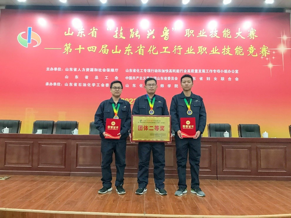 2023年11月6日,山東省“技能興魯”職業技能大賽——第十四屆山東省化工行業職業技能競賽圓滿閉幕,聯泓新材料代表隊斬獲佳績。在儀器儀表維修工(職工組)競賽中,公司儀表部郭峰、郭洪汝分別獲得個人一等獎,兩人共同獲得該項目團體一等獎;在化工總控工(職工組)競賽中,公司生產管理中心MTO裝置高祖仿、徐同仲分別獲得個人二等獎,趙聯路獲得個人三等獎,三人共同獲得該項目團體二等獎。聯泓新材料獲優秀組織獎。