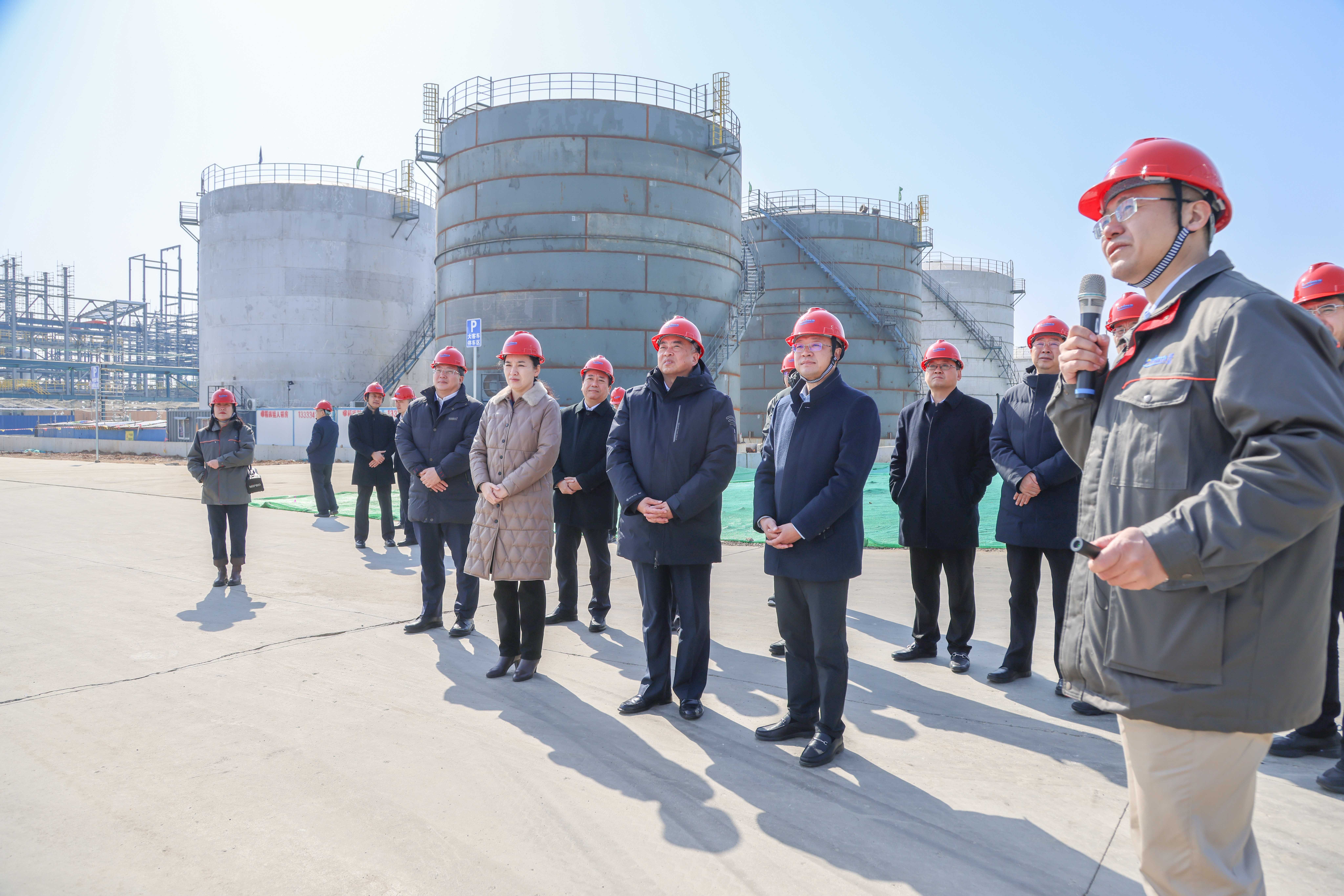 在聯泓格潤一體化項目現場,林武書記詳細聽取了公司在項目建設進展、創新發展與成果儲備等方面的匯報,對聯泓高質量發展所取得的成績給予了充分肯定,要求各級政府部門要持續聚力優化服務,強化助企紓困,更好地服務保障企業高質量發展。他強調,希望聯泓充分發揮自身優勢,積極推進項目建設與創新成果落地,引領產業轉型升級,更好地助力山東新材料產業蓬勃發展。