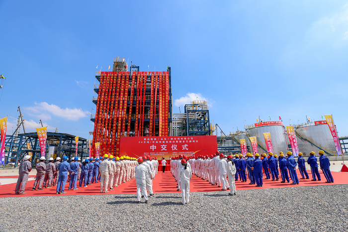 9月2日,聯泓格潤一體化項目24萬噸/年聚醚多元醇(PPG)裝置中交儀式在裝置現場隆重舉行,裝置EPC總承包單位、監理單位、施工單位及格潤一體化項目建設指揮部建設者代表等130余人參加活動。聯泓新材料執行副總裁兼聯泓格潤一體化項目建設指揮部總指揮解亞平出席活動并講話。