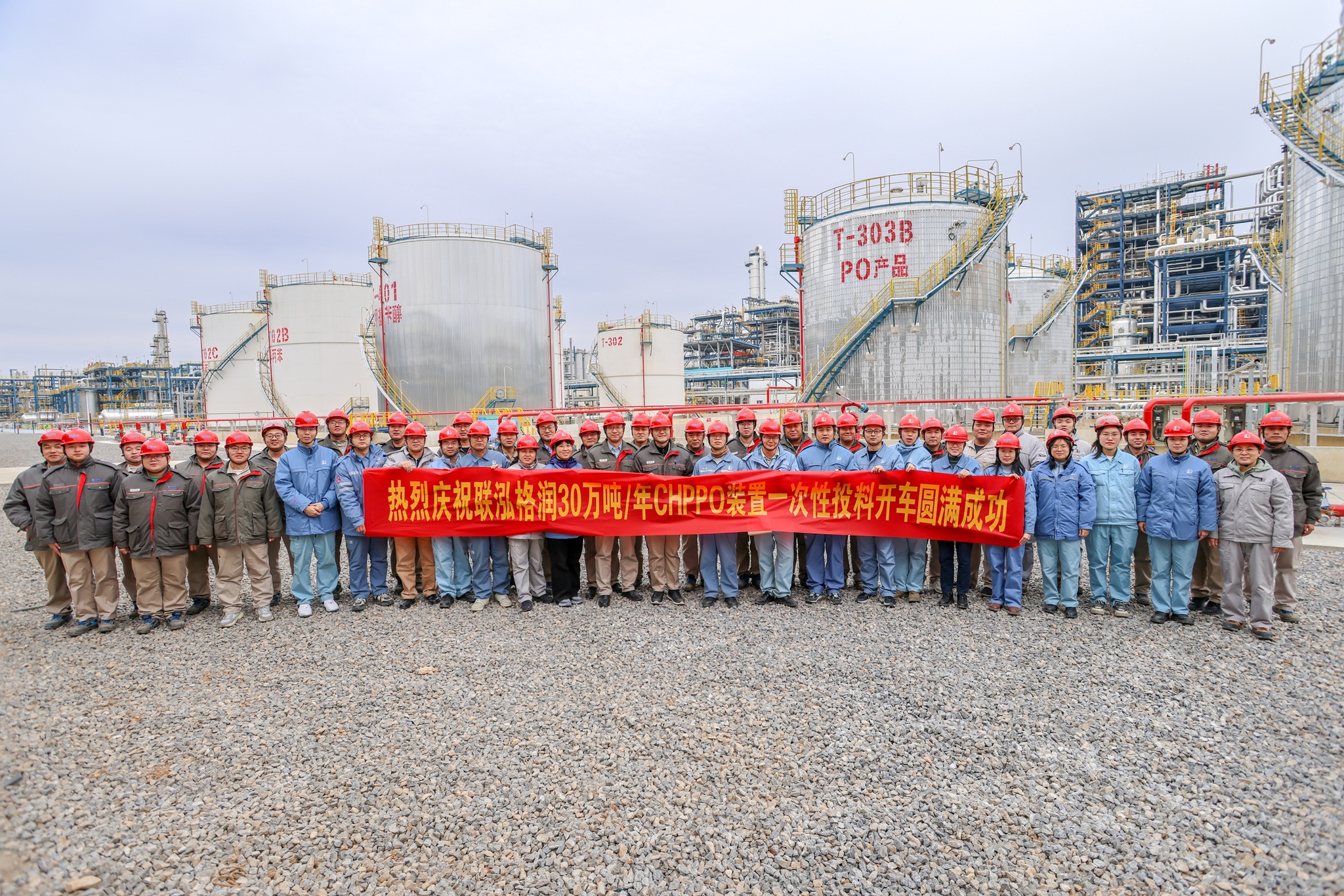 2025年12月22日10點28分,聯泓格潤一體化項目30萬噸/年環氧丙烷(PO)裝置和天然氣制氫裝置一次投料開車成功,順利實現全流程貫通并連續產出合格產品,裝置運行平穩。