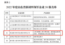 聯泓新材料連續兩年上榜山東省新材料領軍企業50強
