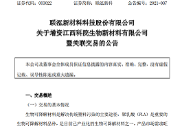 聯泓新科增資江西科院生物 正式進軍生物可降解材料產業
