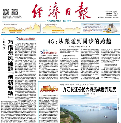 經濟日報頭版重點就棗莊市政府搭建產學研協同創新平臺、破解人才瓶頸、助力城市產業跨越升級進行了典型報道。其中,聯泓新材料有限公司攜手中國科學院成功實現創新驅動,被樹為成功范例榜上有名。