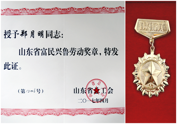 鄭月明董事長榮獲山東省富民興魯勞動獎章